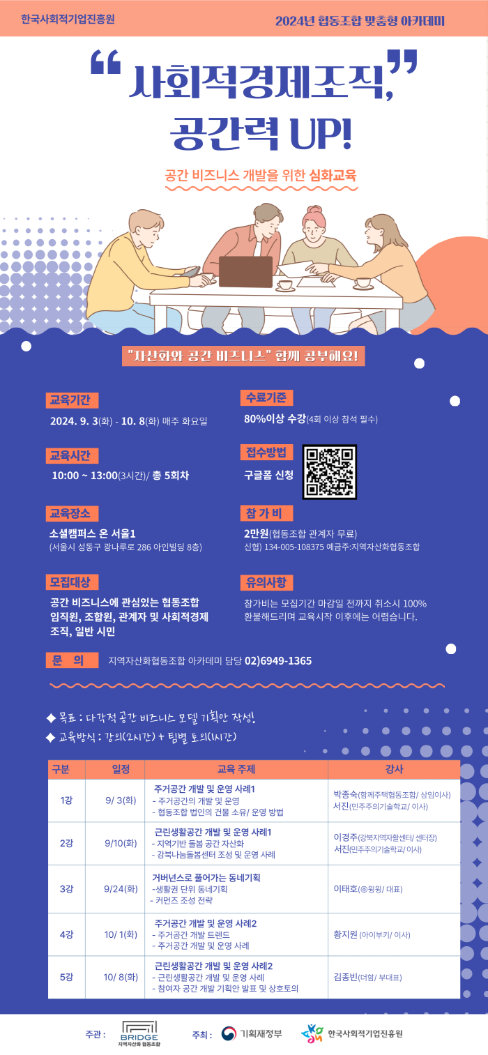 ㅇ교육명 : 2024 협동조합 맞춤형 아카데미 ‘사회적경제조직의 공간력 UP!’ [심화과정]